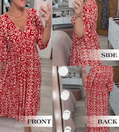 This summer dress in airy and very comfortable material is perfect for a hot summer day and can be worn on all summer occasions. Be it on the beach or at a party.