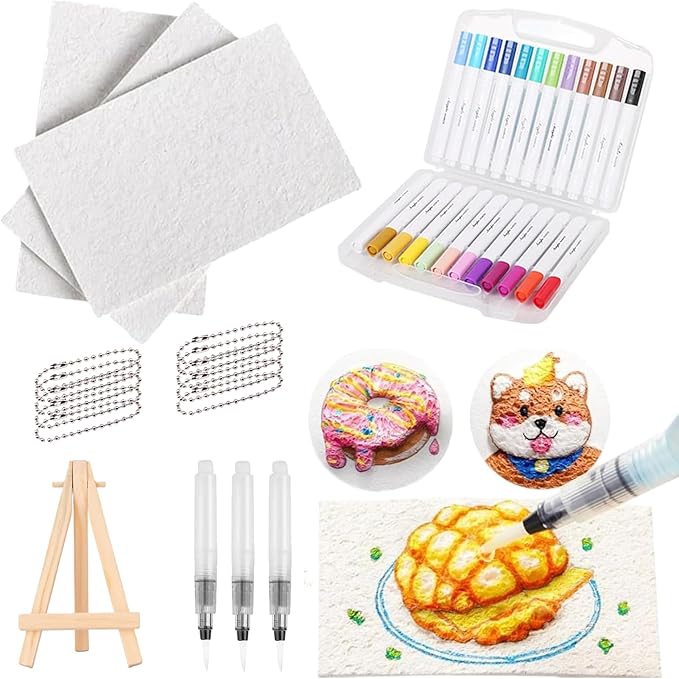 Package Included: Includes 12 vibrant markers, 10 sheets of foam texture paper, water brush (large, medium and small) + 10 beaded chains + mini easel, everything you need to start creating right away.