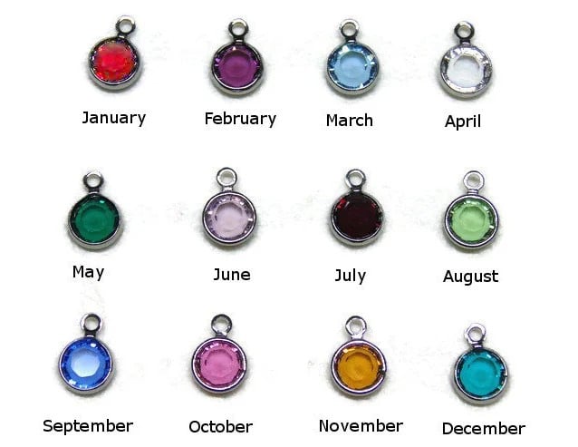 Each keychain is handcrafted with a birthday stone charm and initial.